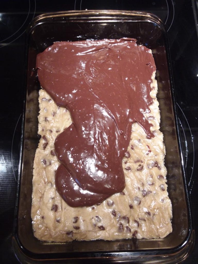 3. Pour melted chocolate mixture evenly over cookie dough.