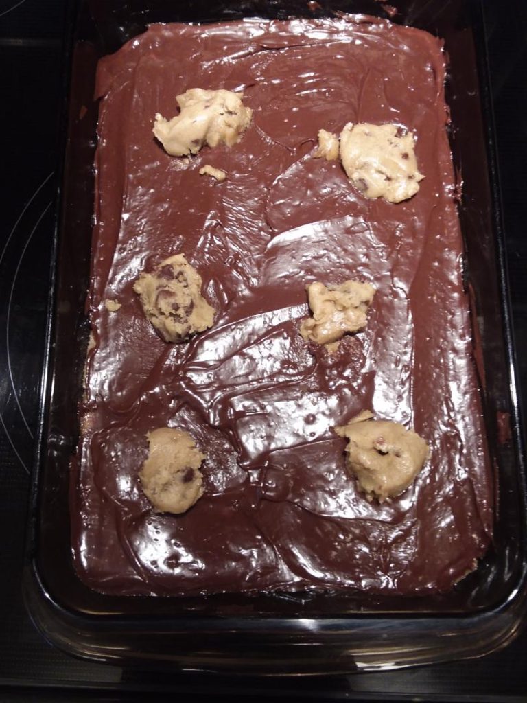 4. Dot the top of the chocolate mixture with leftover cookie dough.
